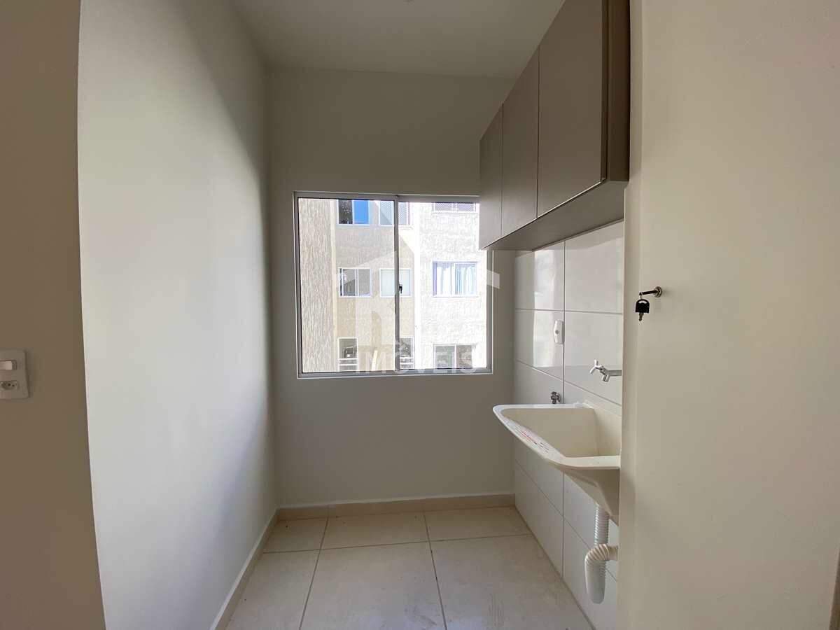 Apartamento com sala conjugada com cozinha, 02 quartos, banheiro social, lavanderia e 01 vaga na garagem coberta. (cob. laje com teto rebaixado de gesso, piso cerâmica). Possui box de blindex e armário no banheiro, armário na cozinha e área de serviço. Apto. 201 Bloco B. Condomínio a confirmar o valor.